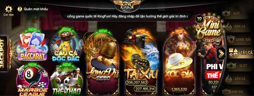 king fun là cổng game đổi thưởng hàng đầu với kho trò chơi phong phú từ các tựa game bài truyền thống như tiến lén miền Nam, poker đến những trải nghiệm hiện đại như nổ hũ, tài xỉu, bắn cá cùng vô số game dân gian đặc sắc khác.